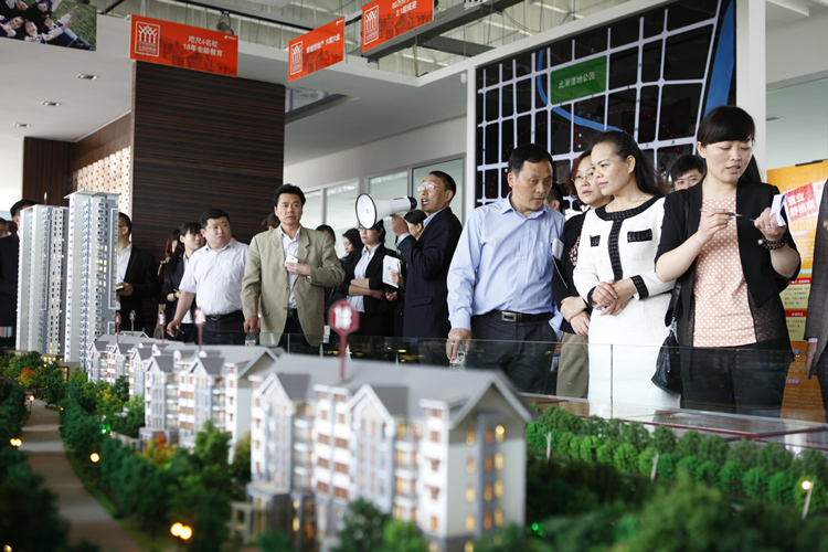參觀完后,大家乘車(chē)前往舒格蘭。沿著風(fēng)光旖旎的濱河西路,公司車(chē)輛與員工車(chē)輛組成了長(zhǎng)長(zhǎng)的車(chē)隊(duì),蔚為壯觀。來(lái)到舒格蘭。吳萬(wàn)源經(jīng)理向大家介紹了舒格蘭項(xiàng)目的位置和北城新區(qū)的城市規(guī)劃。來(lái)到景觀示范區(qū),大家參觀了樹(shù)木叢生、綠草如茵的園林景觀以及奢華典雅的樣板間。