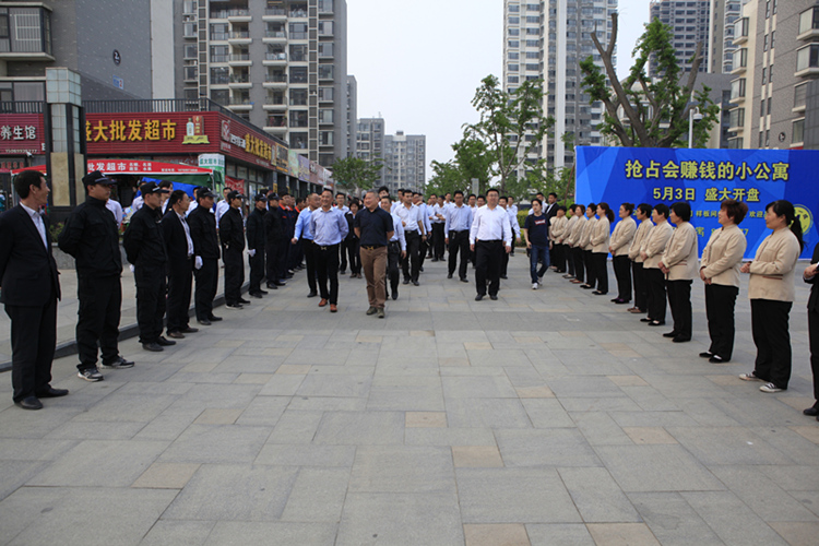 下午16時(shí),公司人員來(lái)到最后一站——金泰華城項(xiàng)目,先后參觀了華城案場(chǎng)、華城二期、華城一期及奧晟物業(yè)。在金泰華城一期和二期入口處,奧晟物業(yè)公司的員工分列站在道路兩側(cè),統(tǒng)一的著裝,整齊的隊(duì)列、熱烈的掌聲歡迎大家的到來(lái),很好的展示了物業(yè)人員的風(fēng)采。