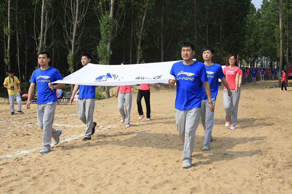 上午9:30,職工趣味運動會正式開始,6支代表隊和裁判隊分別高舉著自行繪制的隊旗,邁著矯健的步伐,喊著響亮的口號,依次通過主席臺,接受大會檢閱。運動員代表與裁判員代表先后進(jìn)行了詼諧幽默的宣誓。公司副總經(jīng)理班磊發(fā)表了熱情洋溢的致辭,并宣布職工趣味運動會正式開幕。