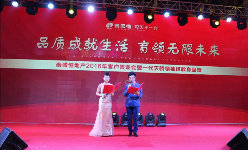 2016年1月18日下午,魯商鉑爾曼酒店三樓多功能廳群星閃耀,人氣爆棚。泰盛恒地產(chǎn)2016年客戶答謝會(huì)暨一代天驕領(lǐng)袖班教育回饋盛大舉行,現(xiàn)場(chǎng)公益教育講座、精彩節(jié)目表演、超級(jí)大獎(jiǎng)抽取分別震撼亮相……現(xiàn)場(chǎng)座無(wú)虛席,熱鬧非凡,近兩千名業(yè)主們共同度過(guò)了一個(gè)精彩紛呈的下午。