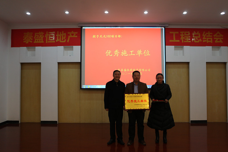 會(huì)上,表彰了金泰華府南府項(xiàng)目、泰盛廣場項(xiàng)目和天元102項(xiàng)目部,對(duì)獲獎(jiǎng)的項(xiàng)目管理中心和優(yōu)秀施工單位進(jìn)行了頒獎(jiǎng)。