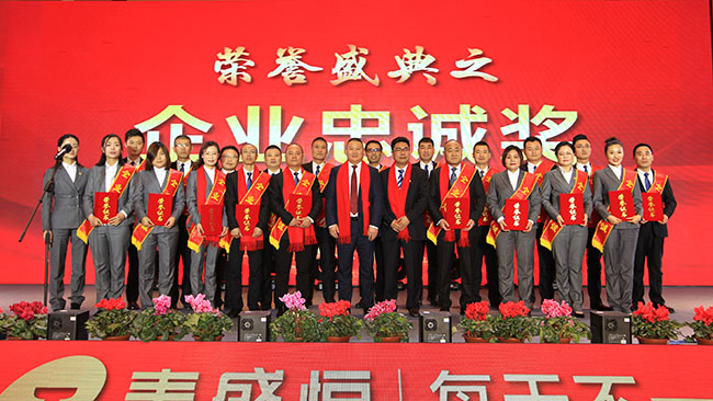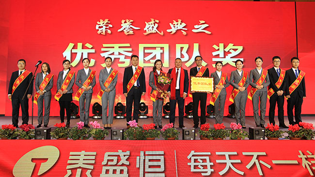 會上,對2017年取得突出成績的優(yōu)秀團隊及個人,以及在公司工作五年以上的老員工進行了隆重表彰,公司高層領(lǐng)導(dǎo)分別上臺宣布了獲獎名單并為其頒獎。其中,泰盛廣場項目獲得優(yōu)秀項目獎、營銷管理中心和招采管理中心獲得優(yōu)秀團隊獎,孫董為獲獎團隊頒獎了榮譽獎牌。成績只代表過去,希望獲獎的團隊及個人在新的一年里戒驕戒躁、再接再厲,充分發(fā)揮模范帶頭作用,為公司發(fā)展再立新功。