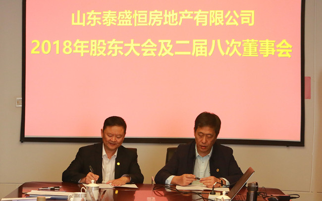 2018年3月30日上午9時,泰盛恒地產(chǎn)2018年股東大會及二屆八次董事會在二號會議室順利召開。會議由公司董事長馬亞鵬主持,陜西金泰恒業(yè)股東代表馬亞鵬、華鵬集團(tuán)股東代表孫鵬、公司董事趙利捷、孫磊出席了本次大會,監(jiān)事會主席王雅萍、監(jiān)事徐愛斌及公司經(jīng)營班子成員列席會議。