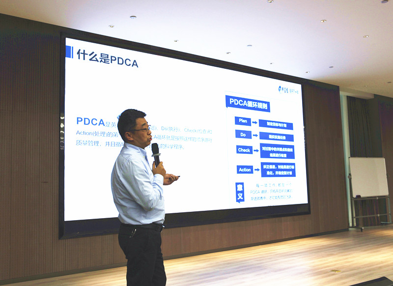 鞏總開場以“小青蛙跳水”游戲的方式活躍氣氛,通過提問復(fù)習(xí)了之前學(xué)習(xí)的PDCA管理方法的知識。緊接著介紹了QC小組的概況,并按照QC小組的工作步驟,要求各小組找出主題目標(biāo),內(nèi)部討論存在的問題,并通過分析和點(diǎn)評各小組的案例引導(dǎo)與會(huì)各組逐漸掌握以PDCA的思維去對一個(gè)問題事件展開分析、找到改善辦法。
