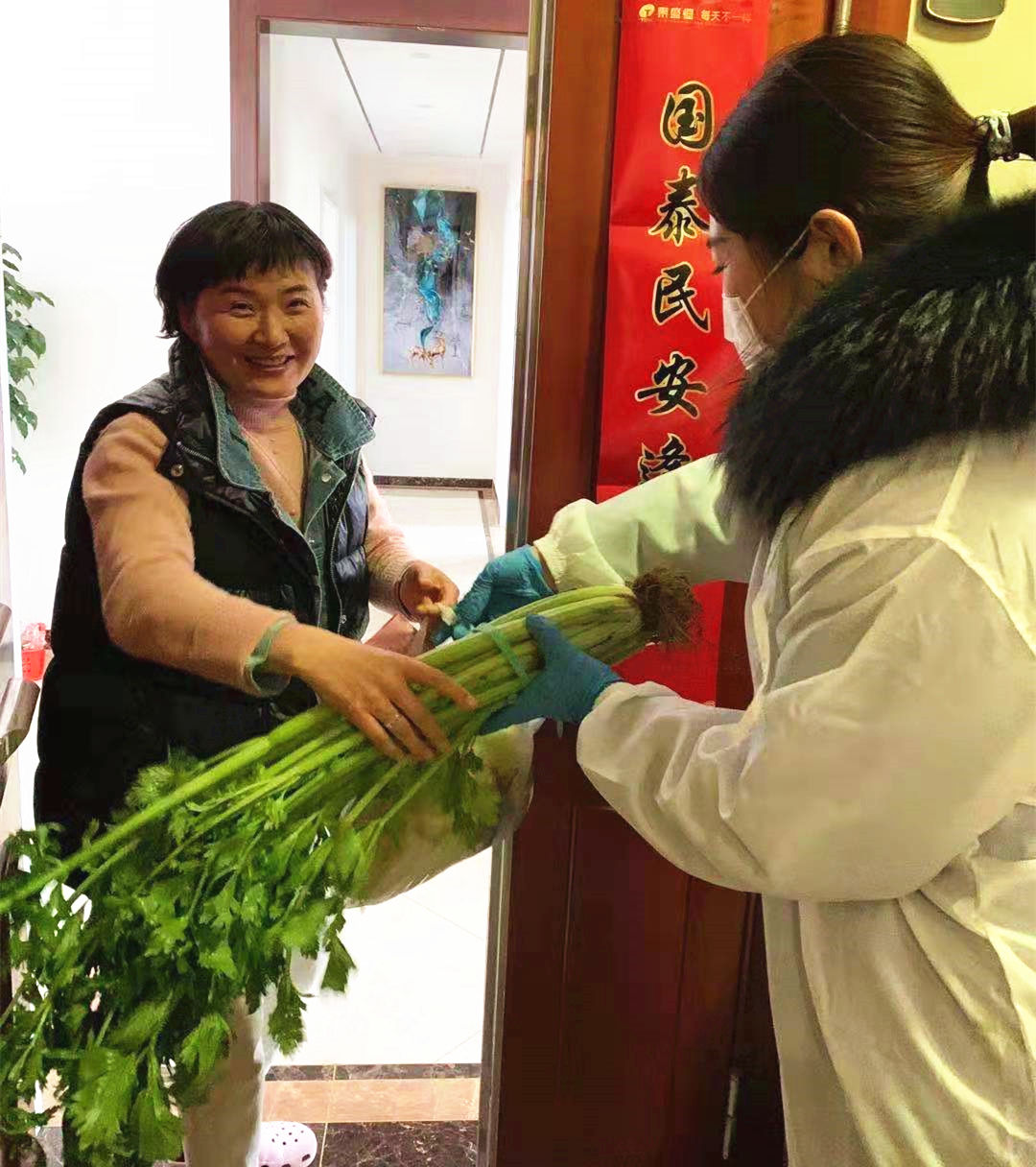自正月初三起,整個臨沂市的各小區(qū)、社區(qū)實(shí)行全封閉管理,全體居民禁止外出。禁足于家中的業(yè)主,面臨著“斷糧”的局面。如何在做好防護(hù)措施的前提下,保障業(yè)主民生,維持日常生活,成為泰盛恒地產(chǎn)重點(diǎn)研究的課題。隨后,公司領(lǐng)導(dǎo)班子當(dāng)機(jī)立斷,決心開展將有機(jī)蔬菜送至小區(qū)千家萬戶的活動。一批一批產(chǎn)自李官農(nóng)場的新鮮有機(jī)蔬菜,被運(yùn)送至金泰華城、金泰華府、金泰舒格蘭等小區(qū),物業(yè)工作人員冒著嚴(yán)寒將蔬菜分類、裝袋,并挨家挨戶送到業(yè)主手中,一并送去的還有溫暖的問候。數(shù)千戶業(yè)主在人生中的“至暗時刻”感受到了來自泰盛恒地產(chǎn)的關(guān)懷。在疫情防控工作中嚴(yán)謹(jǐn)認(rèn)真、措施到位、深受業(yè)主好評的金泰華府,更是成為臨沂電視臺宣傳社區(qū)疫情防控的標(biāo)桿。