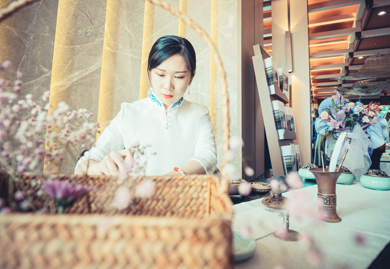 除了沙盤講解與入室品鑒,金泰·錦府營銷中心開放當(dāng)日更營造了一個古樸典雅與現(xiàn)代風(fēng)尚完美融合的新意境。一首古箏曲,滿園傳詩意;曲水流觴處,遍地是花香;中式風(fēng)骨韻,潤物細(xì)無聲。一條蜿蜒的水景溫柔的載著這五顏六色的花瓣將琴棋書畫茶酒花送往心中的遠(yuǎn)方,向眾人展現(xiàn)最淋漓盡致的美。另有桃花釀、桂花酥、英俊帥氣調(diào)酒師;調(diào)香師,茶藝師,圍棋美女見真章;書法家,國畫家,字畫之中有真諦……